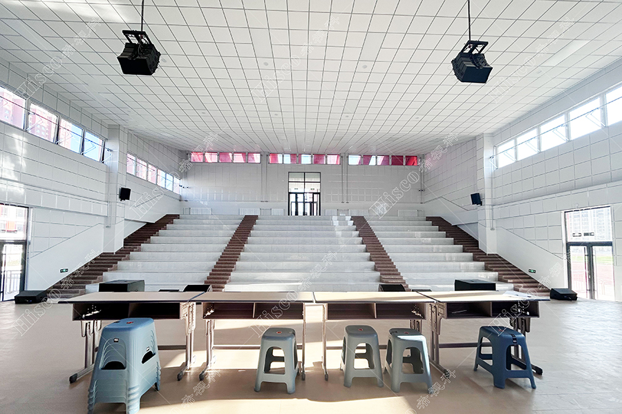 •  专业音质,震撼体验: 采用高品质音箱和专业功放,确保报告厅内每个角落都能享受到清晰、饱满、富有层次感的音质,满足会议、讲座、文艺演出等多种活动的扩声需求。
